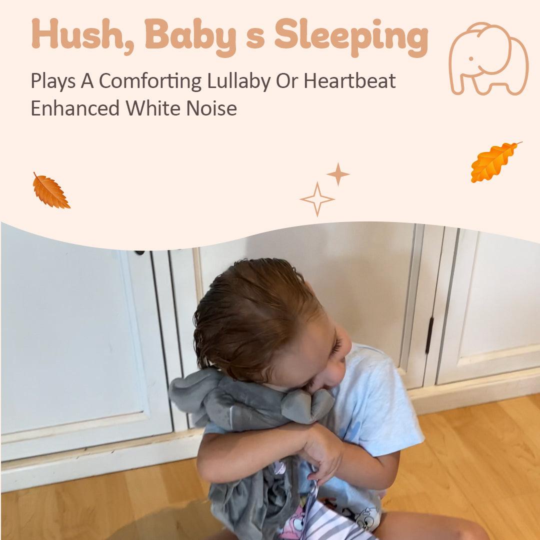 Meet Ellie the Elephant - Our baby soother allows your child to play with the stuffed animal and then gently drift off to sleep with the built-in sound machine.